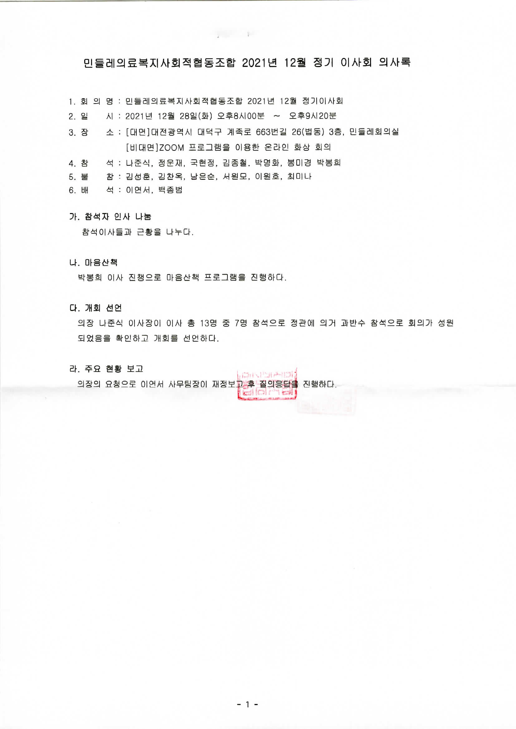 [2021-12] 정기이사회 결과보고
