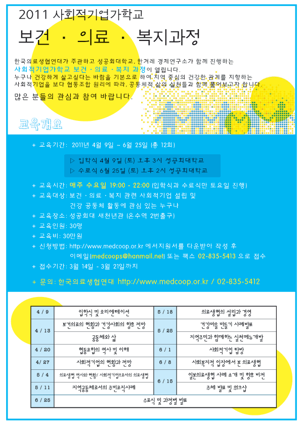 2011 사회적기업가학교(보건, 의료, 복지과정) 상세내용