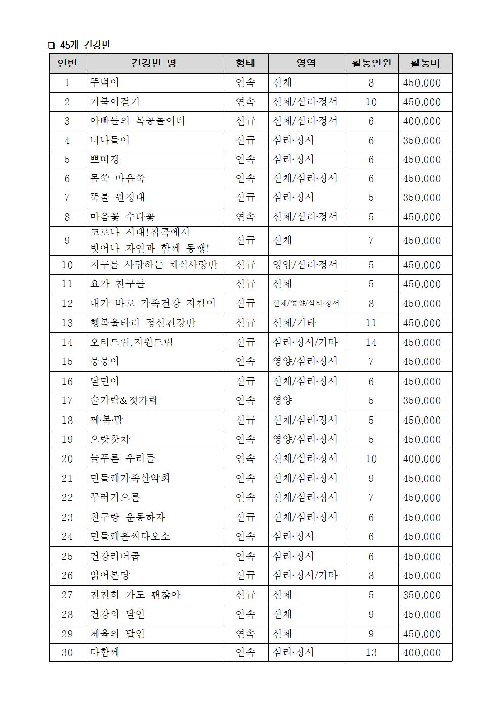 2021년 민들레의료복지사회적협동조합 '건강반' 선정 공고 상세내용