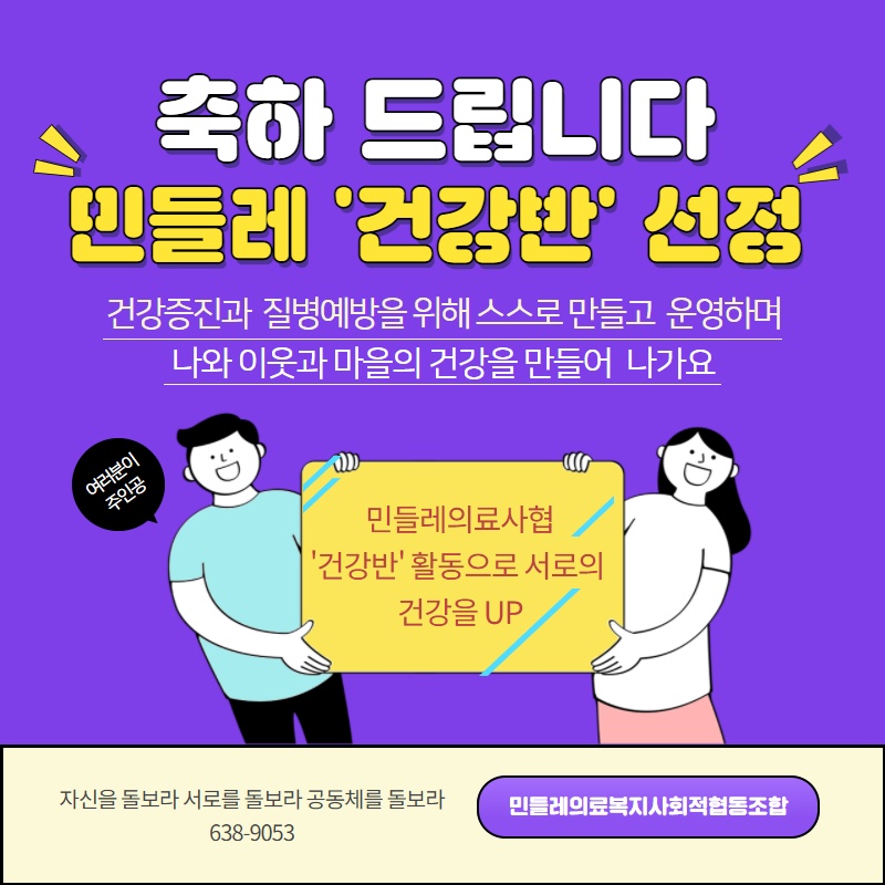 제목 2021년 민들레의료복지사회적협동조합 '건강반' 선정 공고