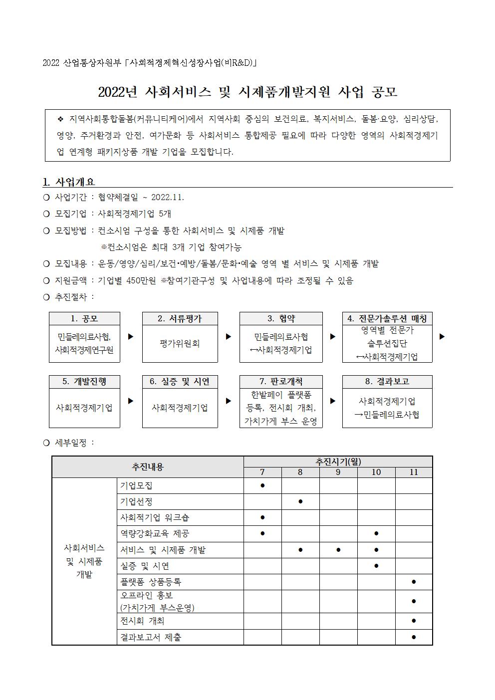 | 제목 | [마감] 2022년 사회서비스 및 시제품개발지원 사업 공모 (컨소시엄형) |
