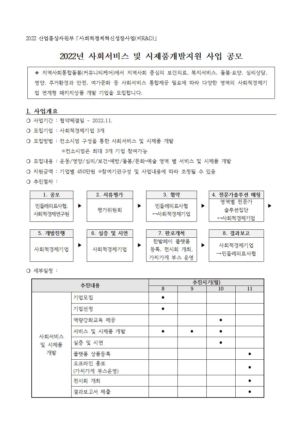 [마감] 컨소시엄형 2022년 사회서비스 개발지원사업 공고 상세내용