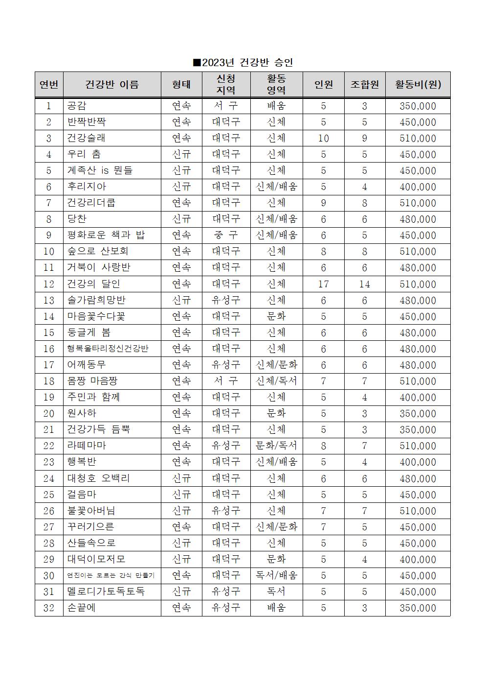 2023년도 건강반 선정 명단 상세내용