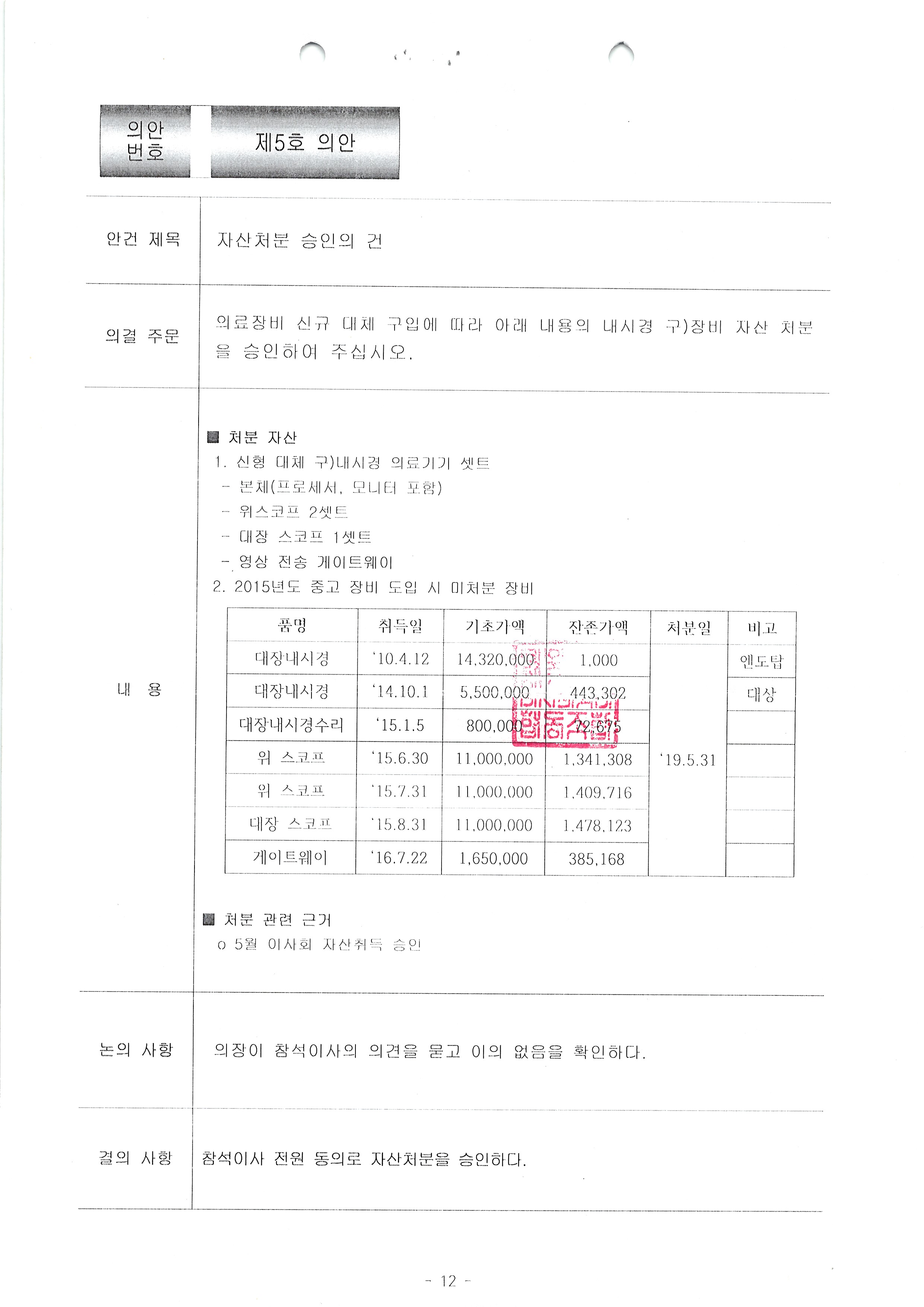 [2019-05] 정기이사회 결과보고