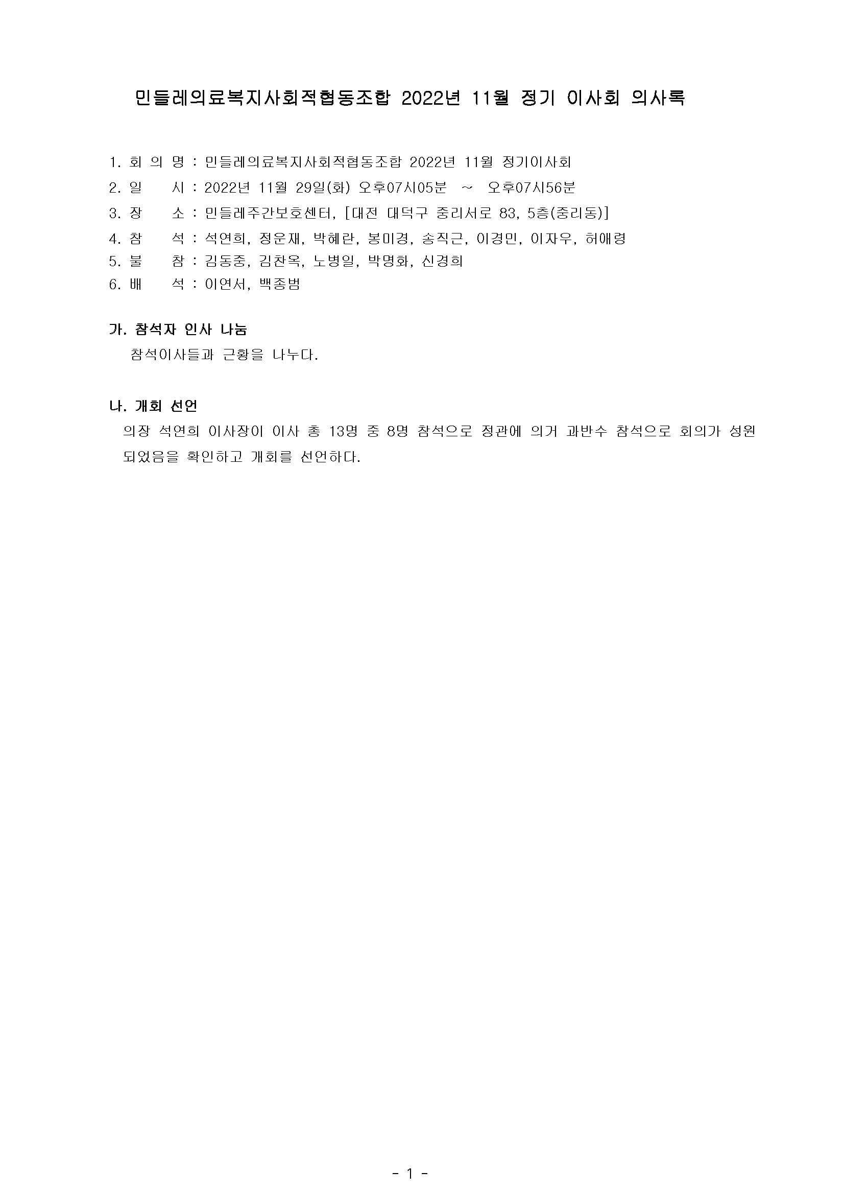 [2022-11] 정기이사회 결과보고