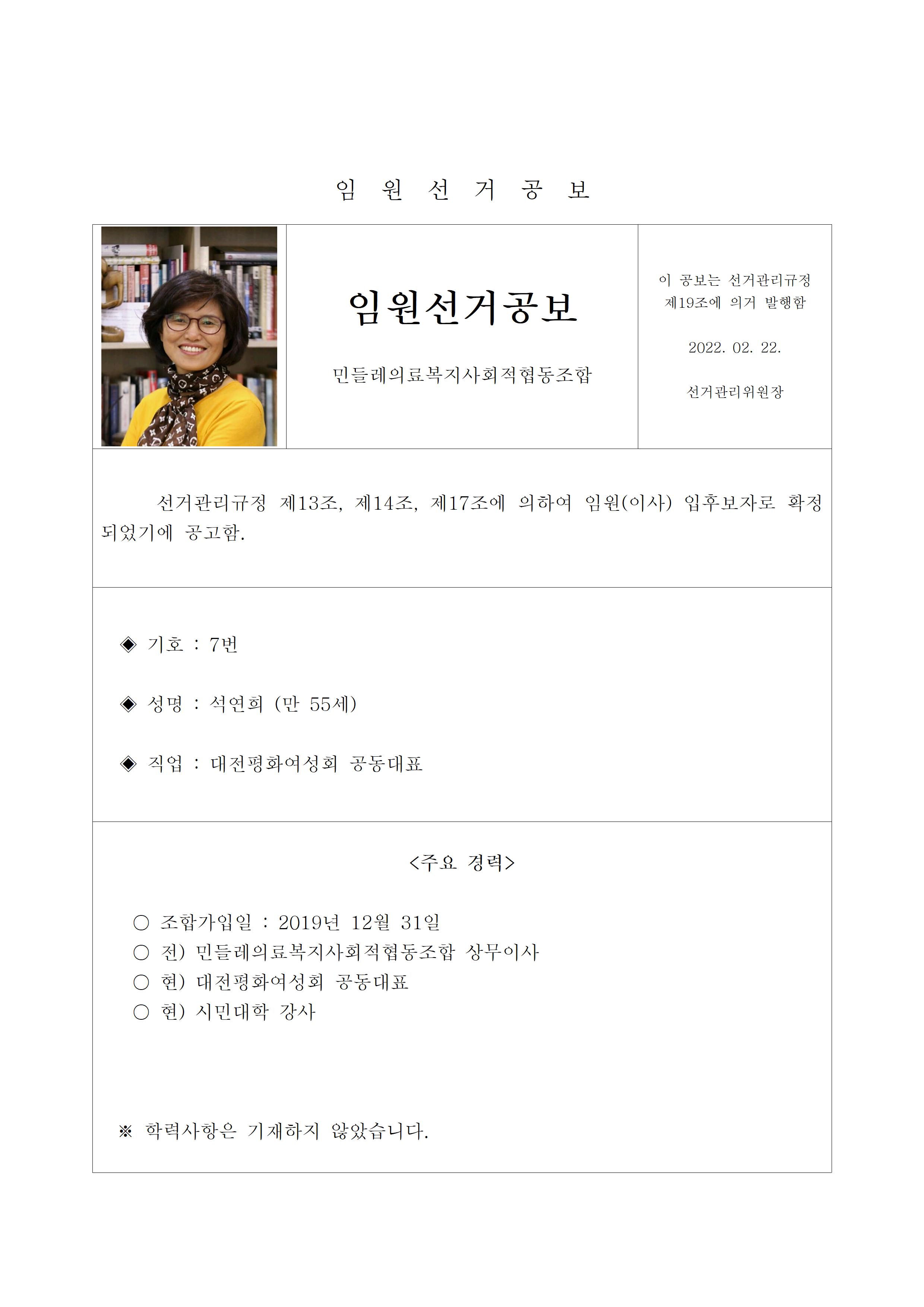 2022년 민들레의료사협 임원(이사, 감사)선거 공보